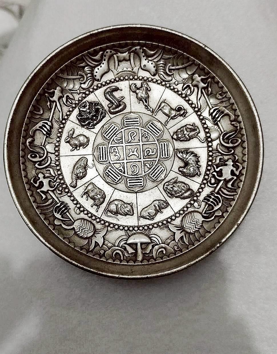 銀浮雕九子真龍十二生肖碗