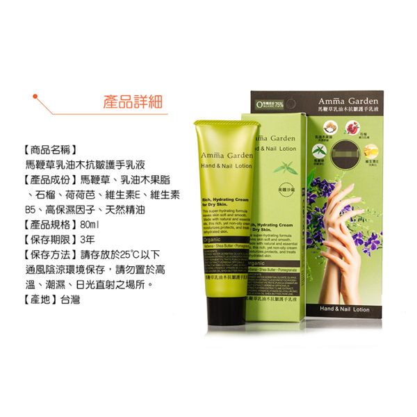 【Amma Garden艾瑪花園】馬鞭草乳油木抗皺護手乳液 80ml