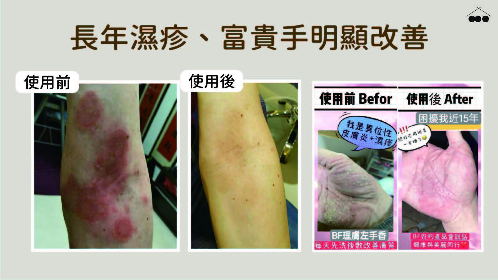 針對於濕疹型肌膚、異位性皮膚炎、富貴手、香港腳、灰指甲、惱人的皮囊炎等問題皮膚。