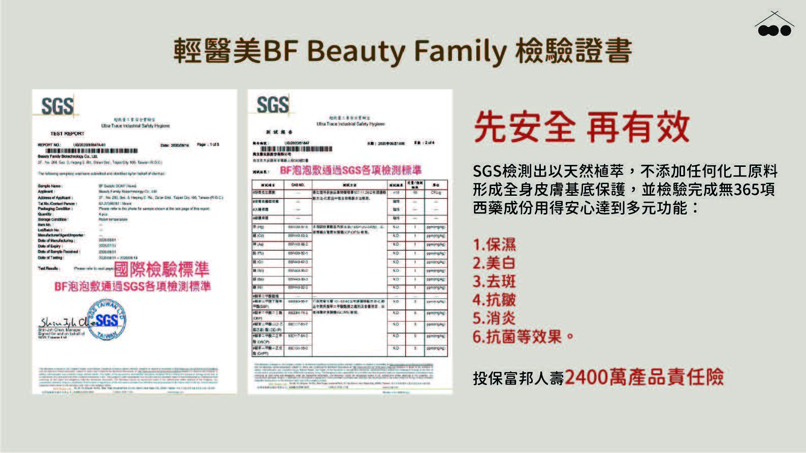 訴求特性:皮膚洗淨、保濕、去除暗沉、滋潤美白,使皮膚潤澤亮麗、延緩皮膚老化、