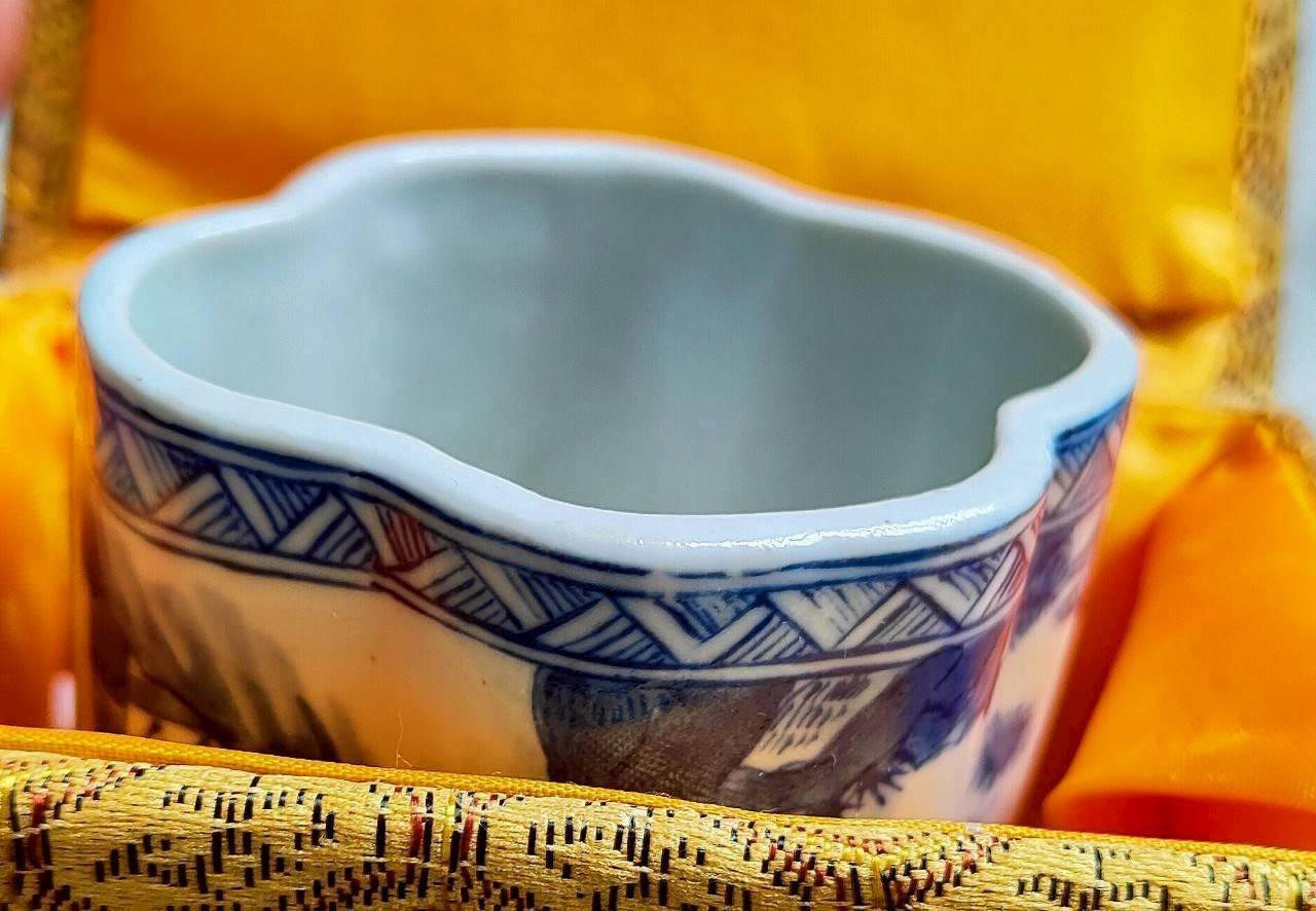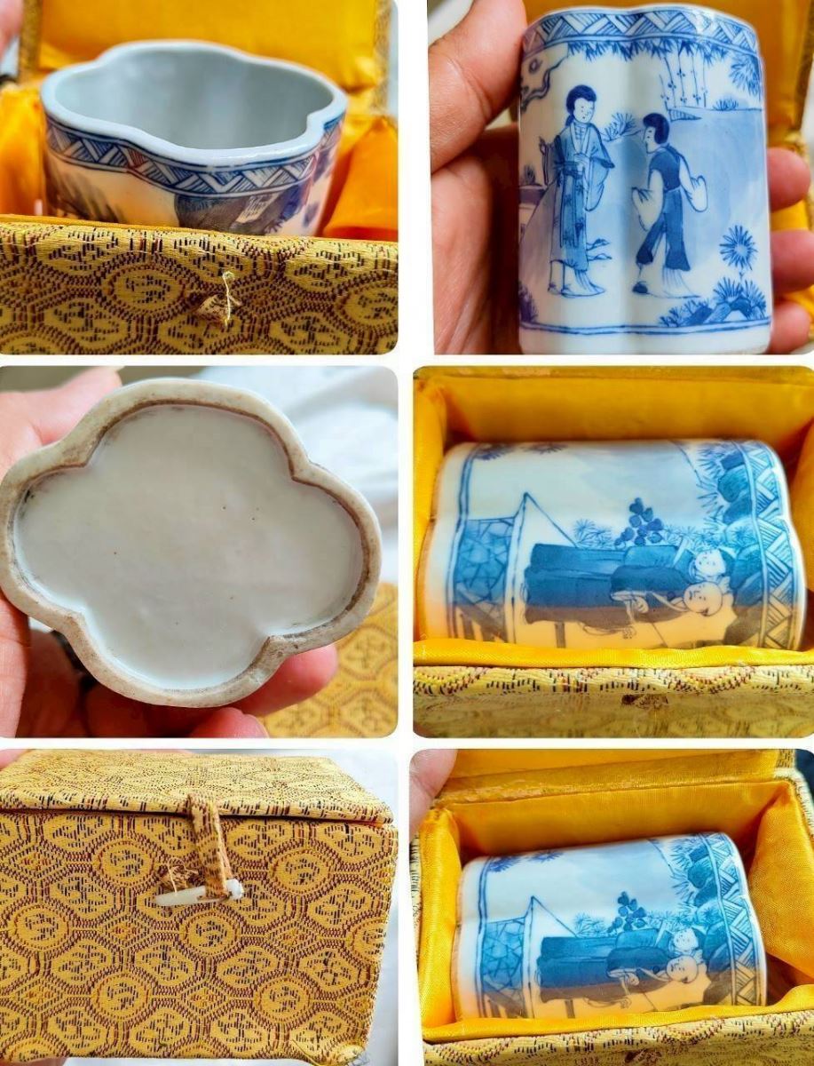 造型修長端莊,胎骨细白瑩潤,青花濃淡相宜,釉色匀淨明快,視之妍麗奪目,青花發色濃郁鲜艷,