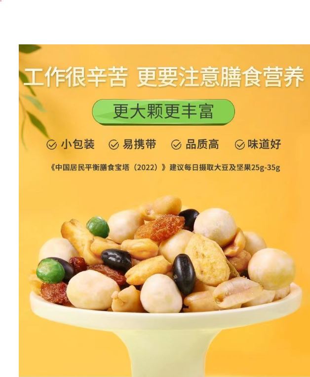 果豆種類多,口感層次豐富鹹甜的口味 還帶點蟹黃味,搭上甜甜的葡萄乾